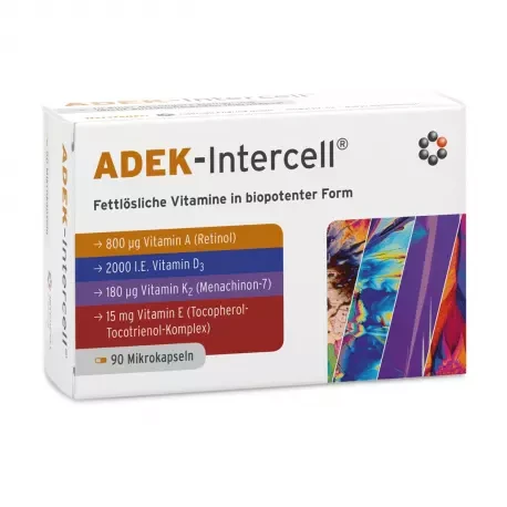 ADEK - INTERCELL® to suplement pozwalający utrzymać prawidłowy poziom witamin w komórkach, wspomagając funkcjonowanie całego organizmu. Są to witaminy rozpuszczalne w tłuszczach, które się wzajemnie uzupełniają i wspierają organizm w wielu kierunkach.