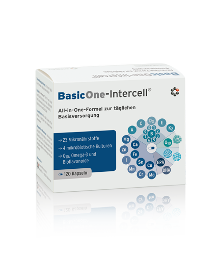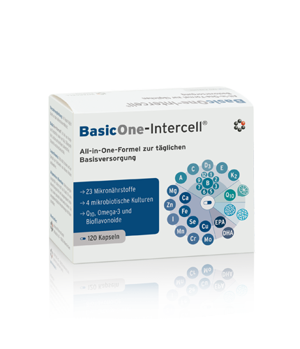 BasicOne zawiera 13 witamin i 10 minerałów i mikroelementów. Ponadto zawiera długołańcuchowe kwasy tłuszczowe omega-3, bioaktywne substancje pomocnicze (koenzym Q10, bioflawonoidy cytrusowe) i 4 wartościowe kultury bakterii.