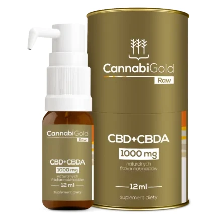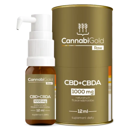 CannabiGold RAW 1000 mg to produkt, który skierowany jest dla osób poszukujących zarówno fitokannabinoidów w formie neutralnej, jak i w formie kwasowej o specjalnie dobranych proporcjach t.j., 700 mg CBD i 300 mg CBDA. Jego wyjątkowy skład jest bogaty w CBDA, czyli kwas kannabidiolowy o charakterystycznym gorzkim smaku.