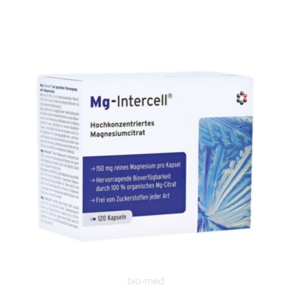 -Mg-Intercell® zawiera 100-procentowo czysty, organiczny cytrynian magnezu (150 mg) gwarantujący optymalne wykorzystanie preparatu przez organizm w formie monopreparatu.